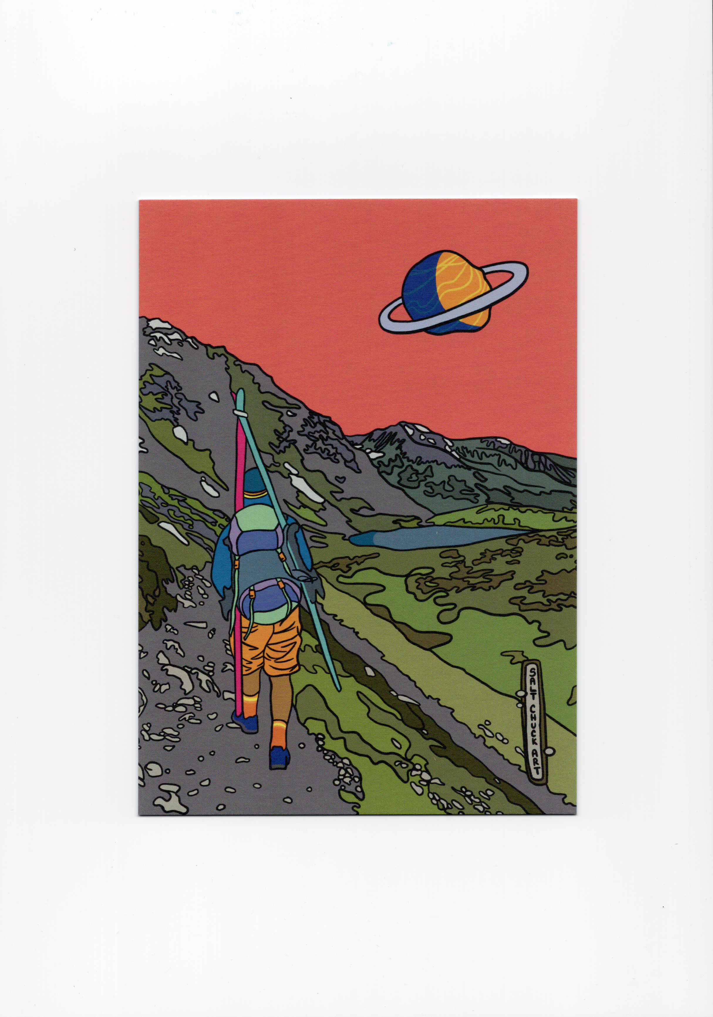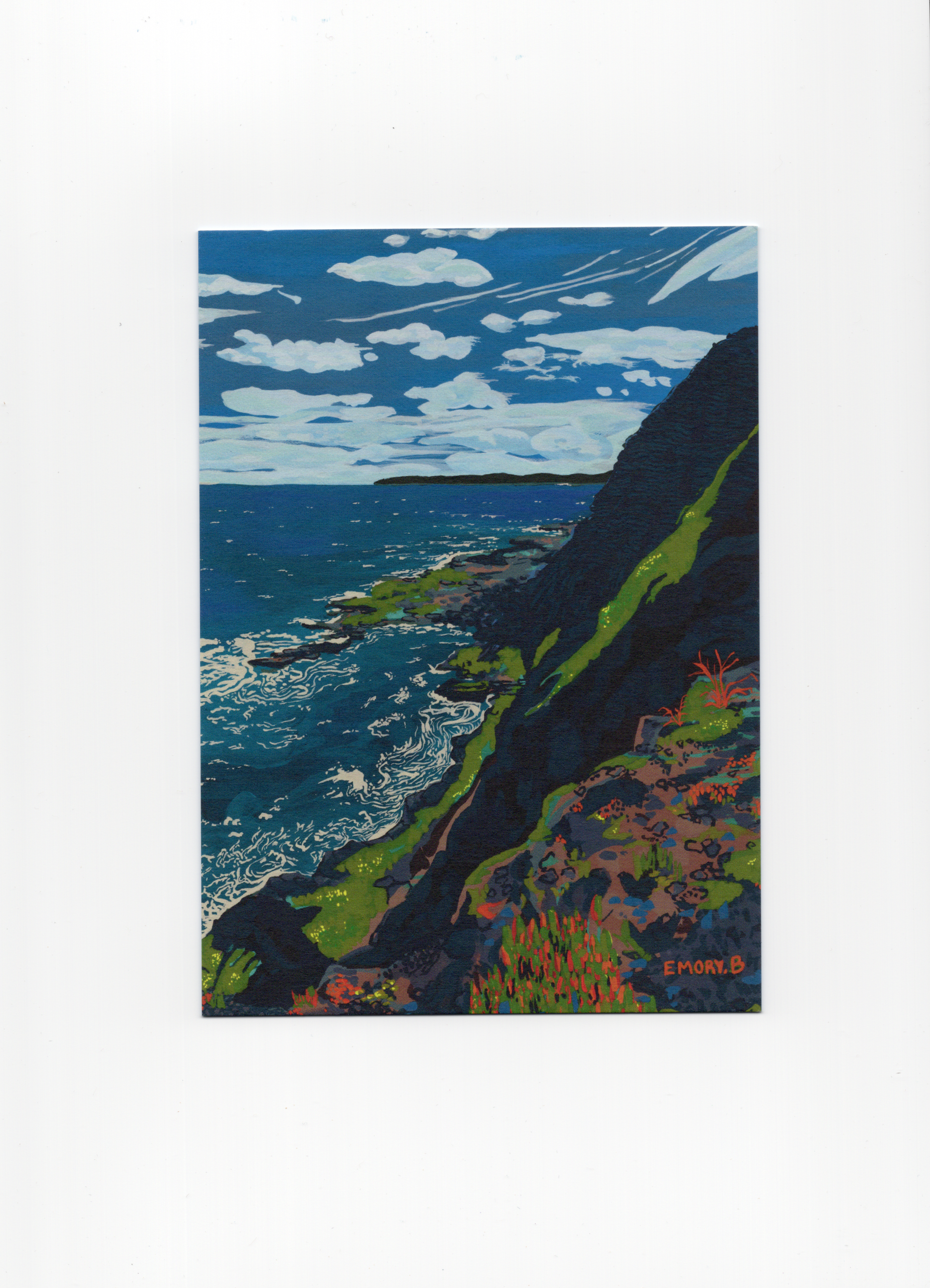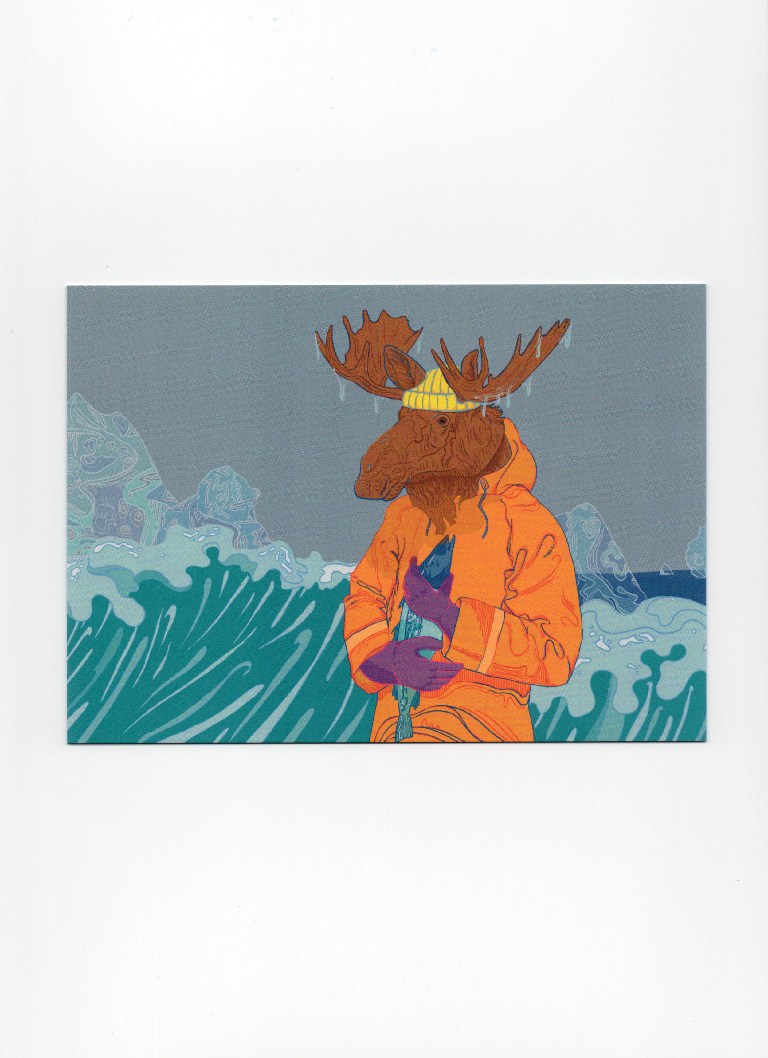 Crane Migration is a print of Emory’s original gouache painting. This 16 × 24 print is framed in white.